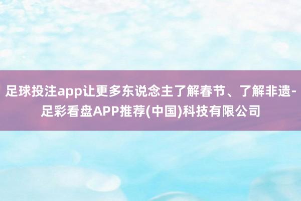 足球投注app让更多东说念主了解春节、了解非遗-足彩看盘APP推荐(中国)科技有限公司