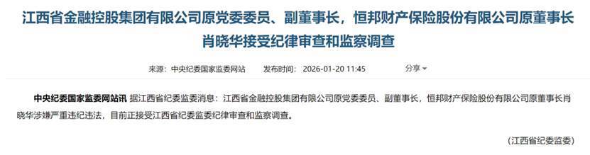 1月20日,恒邦财险原董事长肖晓华,在退休三年后被相关部门通报落马。本日,据中央纪委国度监委网站引述江西省纪委监委音尘:江西省金融控股集团有限公司原党委委员、副董事长,恒邦财产保障股份有限公司原董事长肖晓华涉嫌严重违法坐法,当今正接受江西省纪委监委次第审查和监察访问。