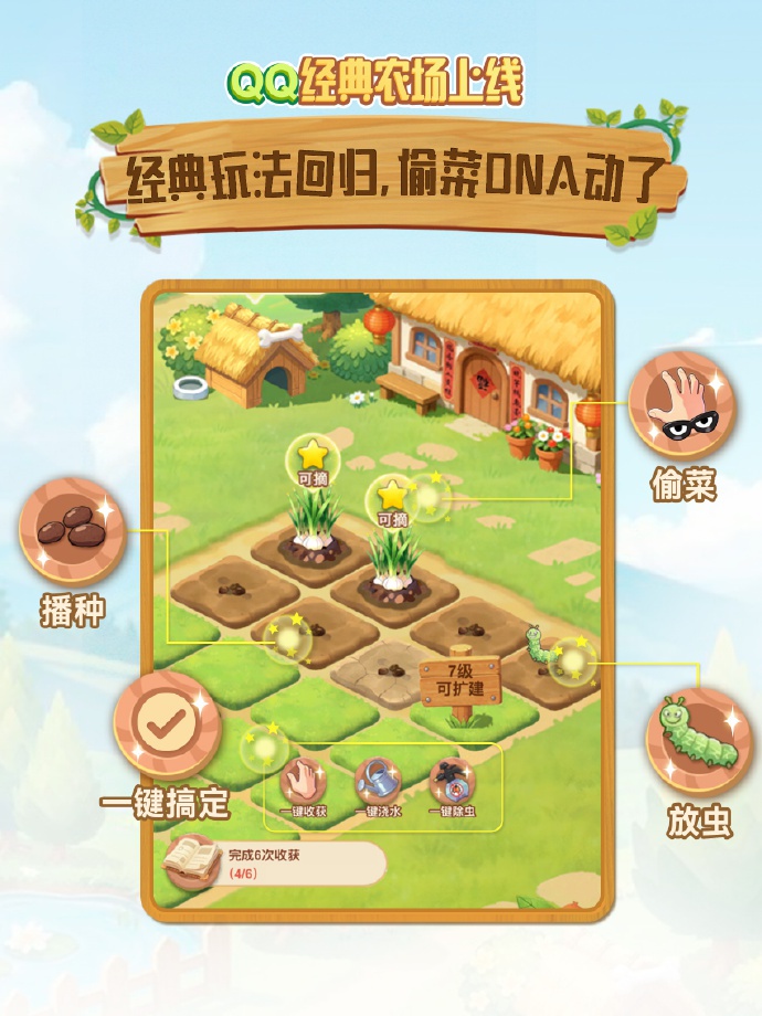2月2日,腾讯透露官宣《QQ经典农场》手游将于2月6日总结,同步登陆QQ与微信平台。该游戏是2009年刊行的模拟策划类游戏《QQ农场》的总结之作,玩家将上演农场主进行栽种、饲养等策划。据此前内测信息贯通,新版保留了经典的“偷菜”等搪塞互动玩法,并可栽种更种种的作物。