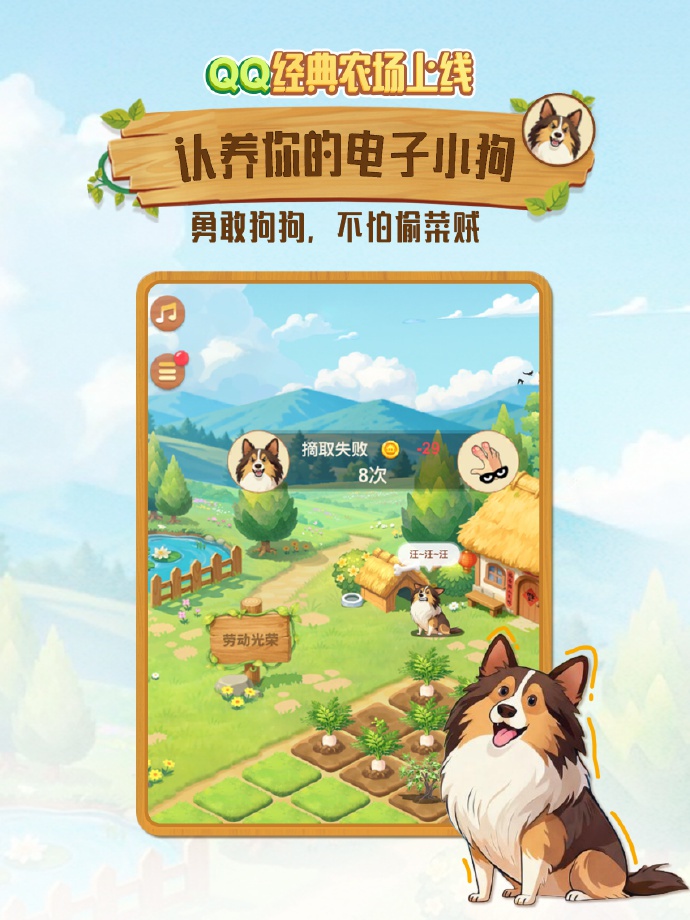 腾讯QQ官方称,农场保留了种菜、偷菜、丢虫等经典玩法,还上线了“种菜中”在线景况,以及“拍一拍”一键领导好友收菜功能,QQ还可推选目生种菜搭子,让用户无谓惦念无菜可偷,还能领养电子小狗看护农场。