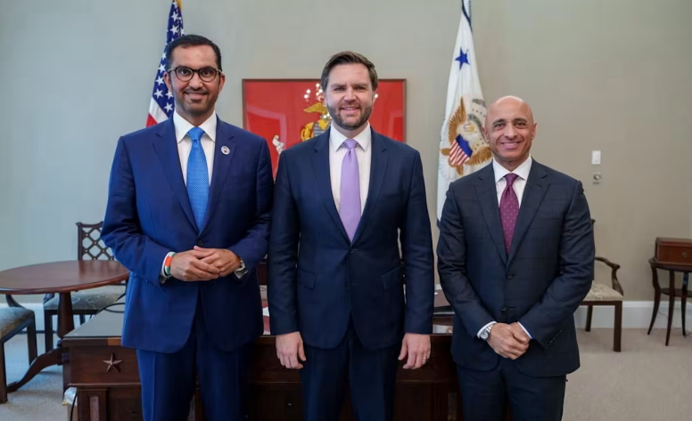 苏丹·贾比尔(左)与万斯合影。 阿联酋驻好意思国大使馆