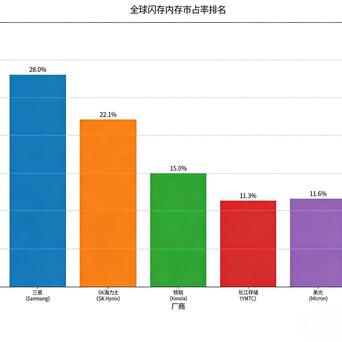 独一在技艺难度最低的闪存内存(NAND)这一块,三星和海力士才气微有所松弛。他们一个占据28%的商场份额,另外一个占据22%,两者加一块,也达到了行家商场的50%。
