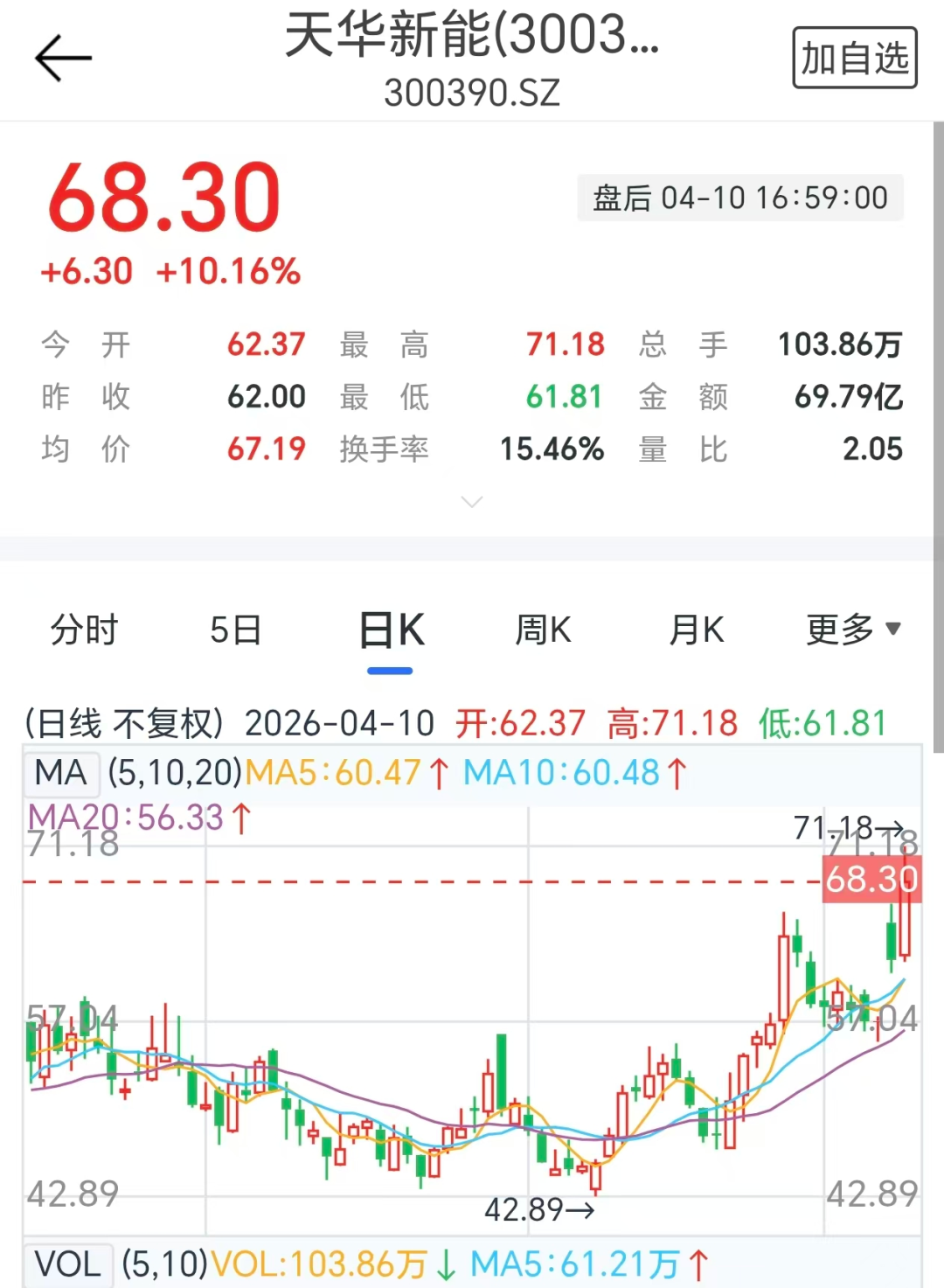 4月10日,天华新能再涨10.16%,较该公司功绩预报发布前依然高潮近20%;近半年(120个来往日)来,该股股价已翻倍,累计涨超163%,近一年(250个来往日)累计涨超221%,最新市值达567亿元。