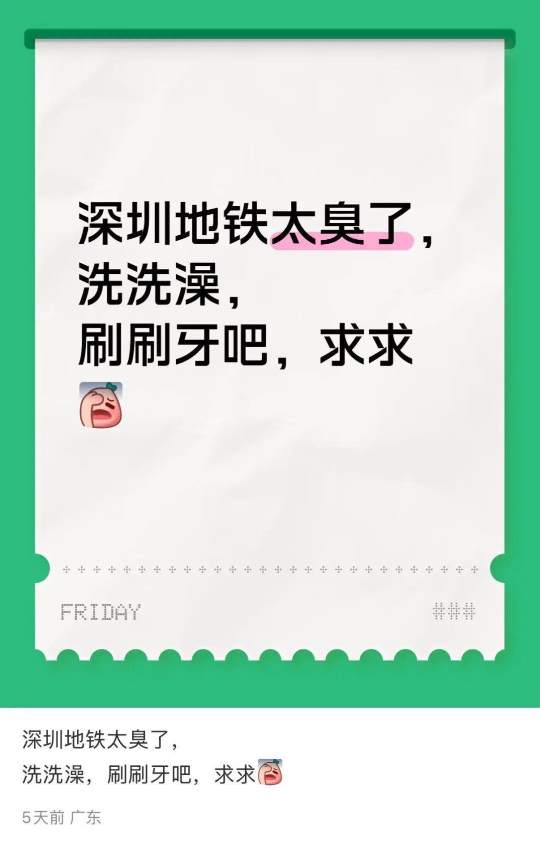 以至有网友戏称深圳地铁为“深圳臭铁”