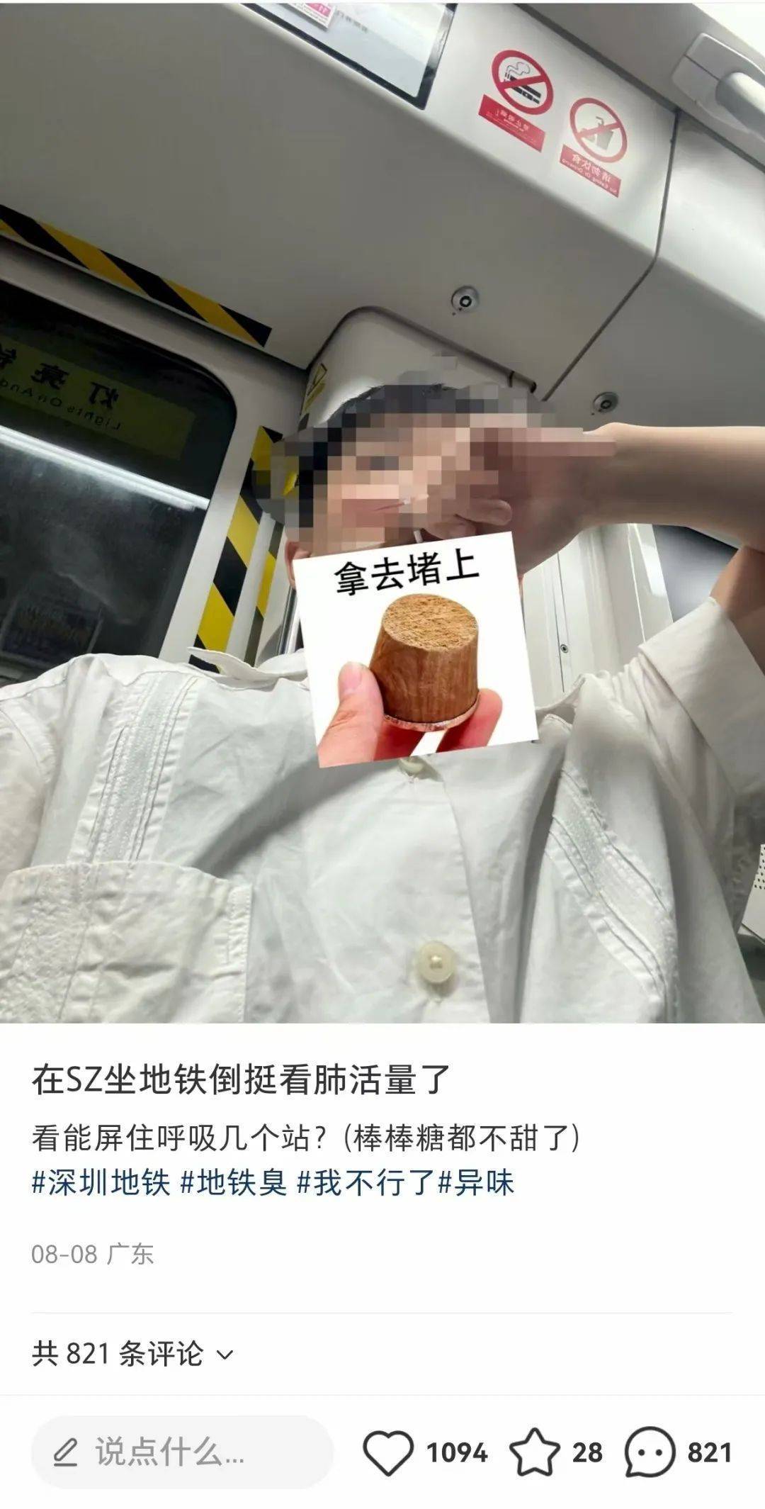 网友称,深圳地铁的臭味在1、3、5、10、11号等清澈较为超过。有乘客示意在高温天气下异味更显明,搭车体验欠安。更有东说念主戏称“坐地铁全靠肺活量,看能屏住呼吸几个站”。