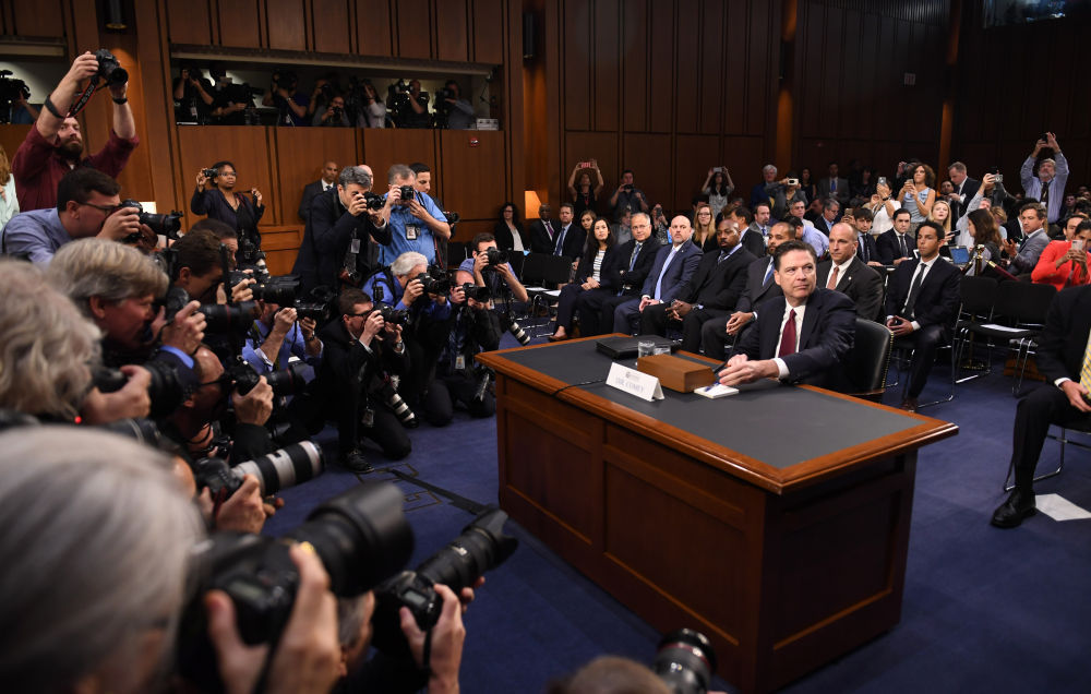 2017年6月8日,在好意思国华盛顿,好意思国联邦访谒局(FBI)前局长詹姆斯·科米(中)在国会推敲院准备出席听证会。新华社记者殷博古摄