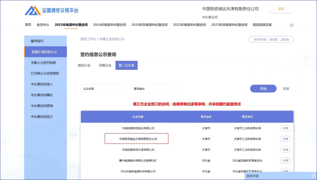 近日,国度发展改动委发布了2025年电煤中始终协议供需企业公示名单,中国物质储运天津有限拖累公司凭借优秀的资源整合智商和处事质料,收效入围。