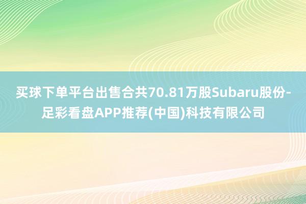 买球下单平台出售合共70.81万股Subaru股份-足彩看盘APP推荐(中国)科技有限公司